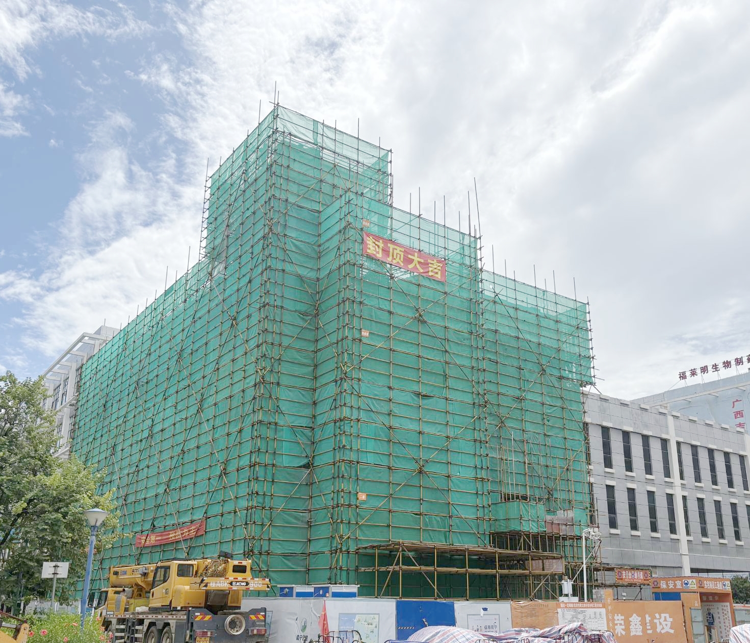 廣西壯族自治區醫療器械檢測中心電磁兼容續建項目位于南寧市江南區國凱大道東19號金凱工業園內,占地面積673.15平方米,建筑面積2040.29平方米,新建1棟兩層電磁兼容實驗室。項目自籌備以來,得到了各級部門的高度重視和大力支持,在各部門的協同努力下,如期取得施工許可證并于2025年5月正式開工建設,2025年8月中旬順利封頂。建設過程中,嘉通公司聯合榮鑫公司成立了黨員先鋒隊及青年突擊隊,實地踏勘,結合現場實際情況,指導施工隊組優化工序,交叉施工縮短工期,將黨建與業務深度融合、以黨建引領樹標桿、亮旗幟,激發攻堅克難的先鋒力量,推動項目比原計劃提前15天完成結構施工并通過主體驗收。在主體結構施工沖刺階段,嘉通公司帶領建設團隊精心組織管理、掛圖作戰,搭建起多部門聯動的高效協同體系,以高標準、高質量、高效率推進項目建設并順利通過主體驗收,嚴格按照管委會要求完成了節點任務,樹立了企業良好形象。
